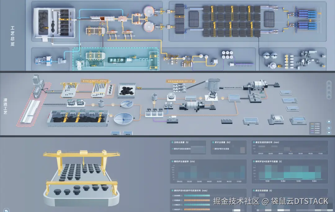 在铜业加工场景中,实践重点落在生产现场与经营分析的协同。通过全厂级实景建模、人员定位与风险感知能力建设,企业构建了覆盖多车间、多工序的实时运行视角;在此基础上,将产量、能耗、设备状态与关键经营指标关联分析,使管理层能够在空间语境中理解经营结果的形成过程。数字孪生演进为支撑生产协同、应急处置与经营分析的综合载体。