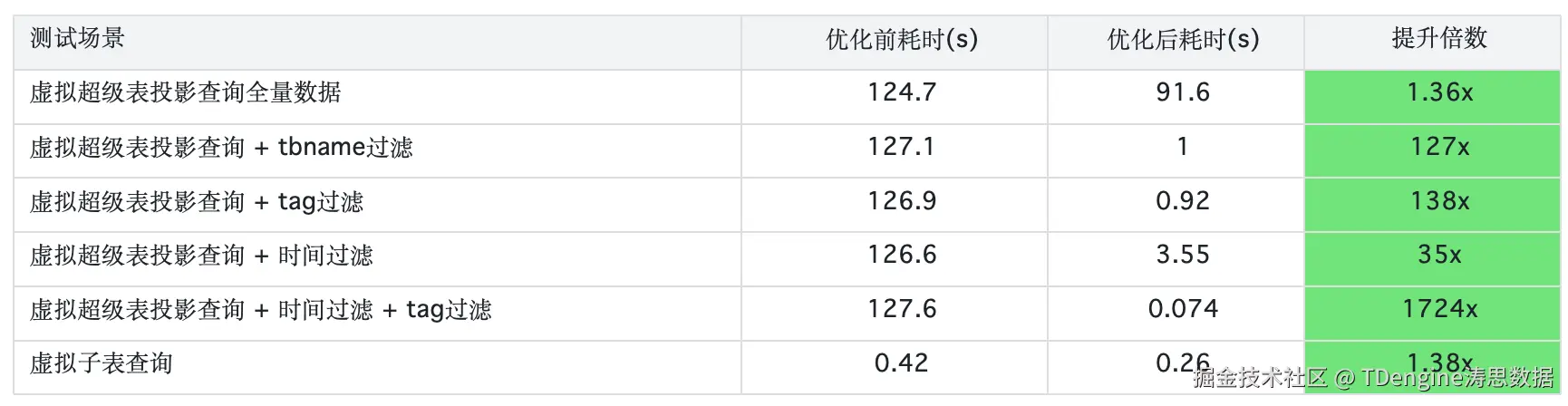 投影查询性能优化(虚拟超级表 / 子表)