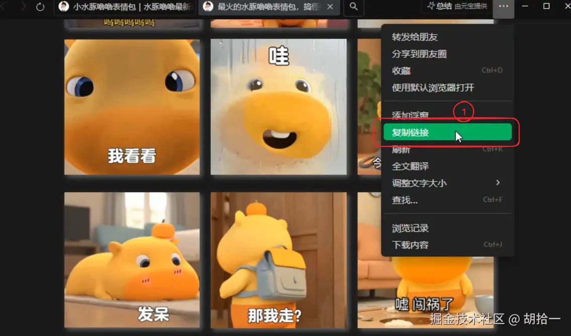 1、打开刷到的水豚噜噜表情包公众号文章,点击右上角复制文章链接,全程无需其他操作。