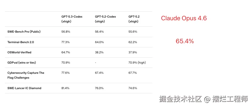 而在一些基准方面的测试,每个模型的基准测试都是不一样的细节,目前 GPT-5.3-Codex的编程(Terminal-Bench 2.0)分数高于 Claude Opus 4.6,但是最终还是自己去体验之后,才能明确知道哪个模型更适合自己日常开发。