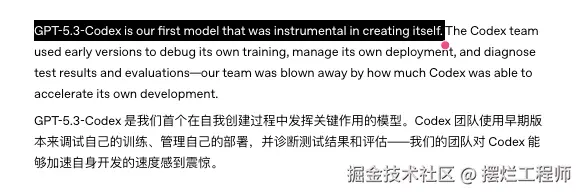 最主要的是 GPT-5.3-Codex 是 OpenAI 首个自我创造的模型。