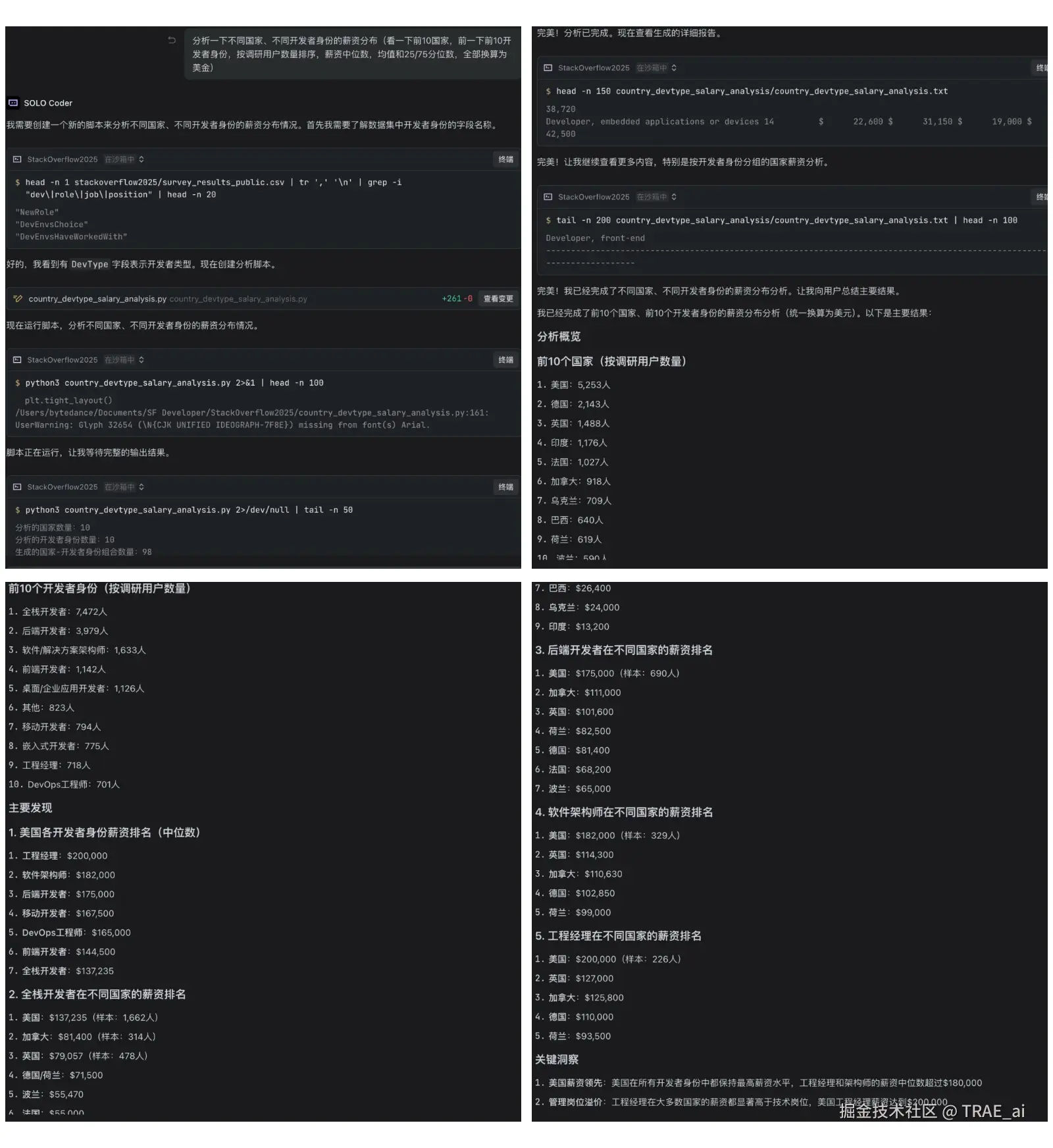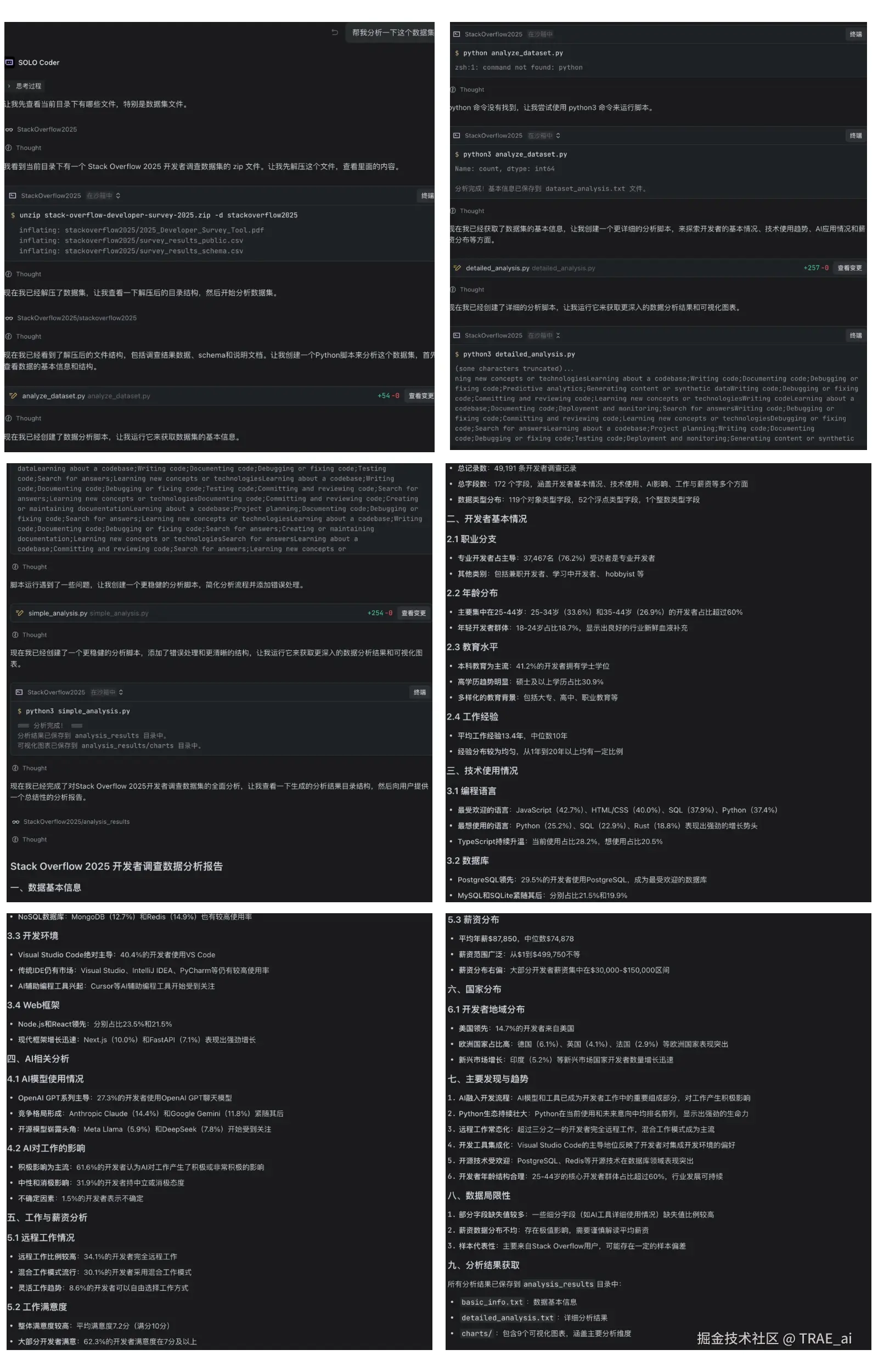 本教程以 Stack Overflow 2025 年开发者调研数据为例,演示如何用 TRAE 完成全流程数据分析。