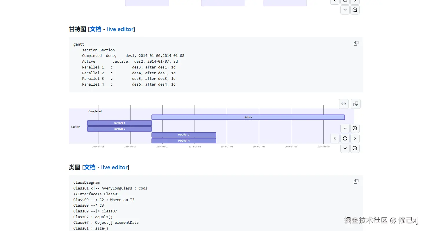 选择自己需要的图表类型开始编写,官方文档语法、示例提供的比较齐全,有不太清楚的可以查阅文档。以下是部分示例截图: