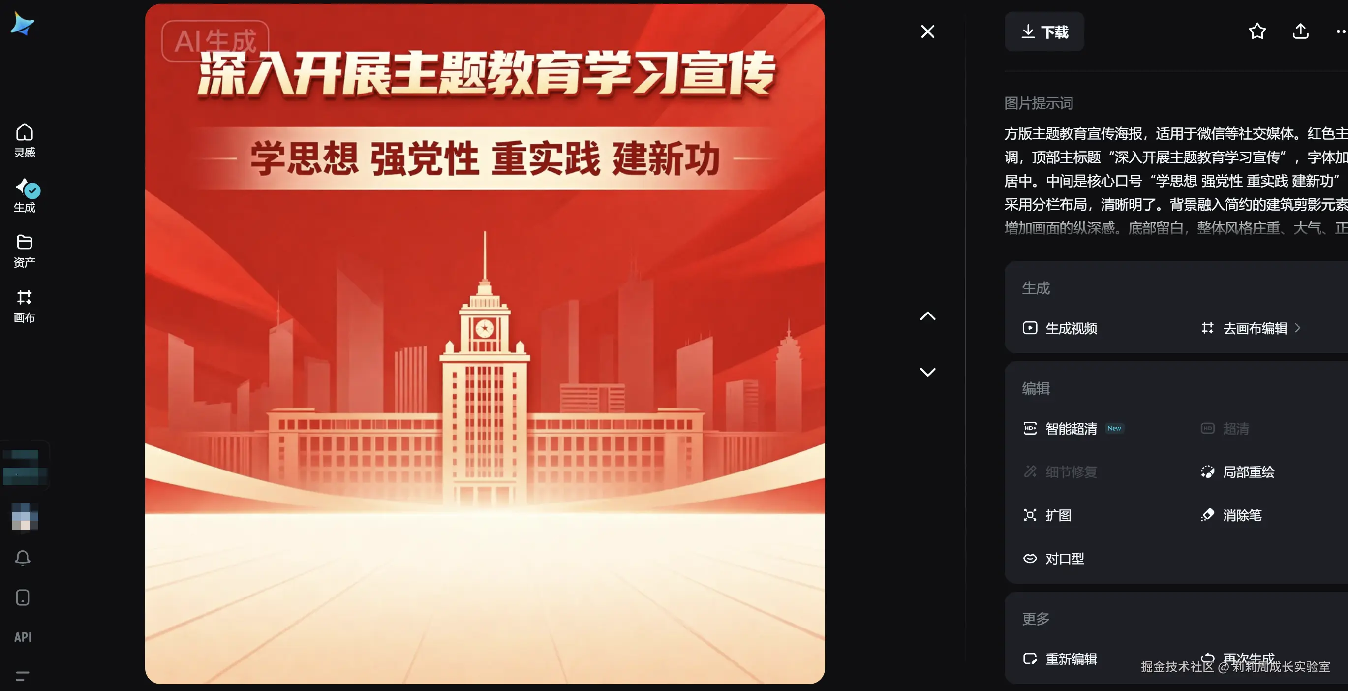 在「做宣传海报」这个高频、低容错的行政场景下, 即梦是目前国内生图视频工具里的顶级选择。