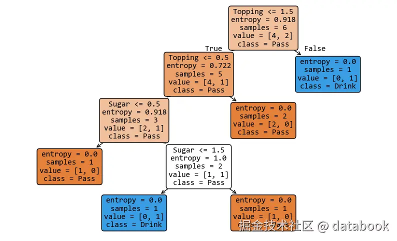 Decision Node): 中间的那些站点,负责根据某个特征(比如小料、冷热)把数据分流。 - 叶节点 (
