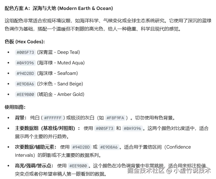请给我推荐 3 组专业、学术且现代的配色方案。每一组请直接给我 4-5 种颜色的十六进制代码(Hex Codes),并告诉我哪个颜色适合做背景,哪个适合做高亮。