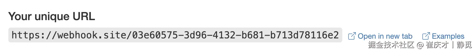将此 URL 复制下来,就可以作为 Webhook 来使用,此处的样例为 webhook.site/03e60575-3d…