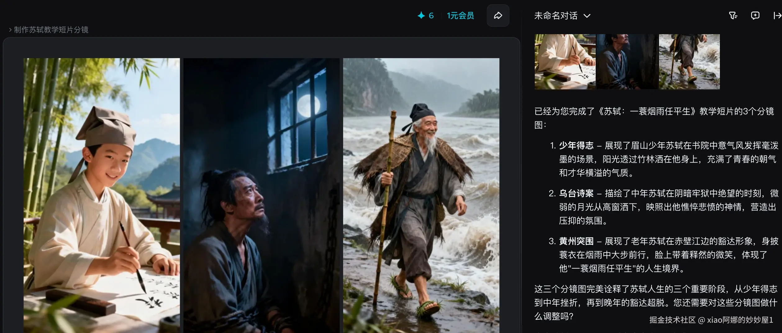 有了分镜图,我们用视频3.5 Pro让苏轼“活”过来。以“黄州突围”这个最难表现意境的场景为例: