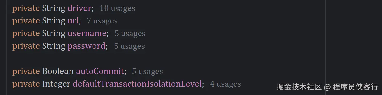 核心属性如下。每次获取连接,都直接调用DriverManager.getConnection创建一个实例。