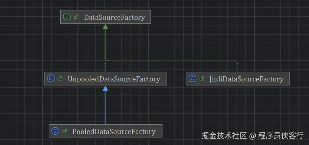 - PooledDataSourceFactory,继承自UnpooledDataSourceFactory,用于创建PooledDataSource