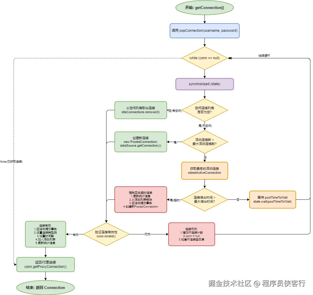 PooledDataSource内部持有 UnpooledDataSource 创建真实连接,维护 PoolState 管理连接状态,使用动态代理拦截Connection.close() 方法,将连接归还到池子而非真的关闭。