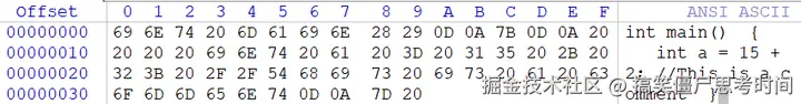 可以看到,原本在人眼中像画一样以二维形式铺开的代码,在底层看来只不过就是一串符号。之所以能看到美妙的格式,无非是因为机器知道遇到\r\n之后要从新的一行打印后续符号。