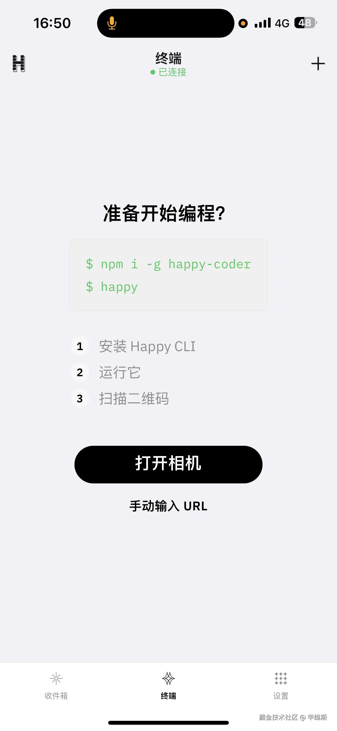 打开手机 APP 扫码,扫码完成之后,电脑上就会自动打开 Claude Code。