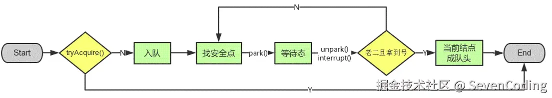 - tryAcquire是获取锁逻辑,获取失败后,会执行框架AQS的后续逻辑,跟ReentrantLock自定义同步器无关。