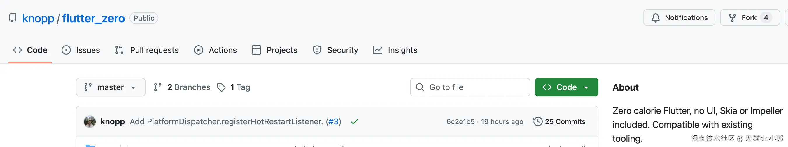 flutter_zero 是一个由 knopp 发起的实验性项目,它的核心目的是利用新的 Dart 特性(主要是 FFI)重新构想 Flutter 的架构,将 Flutter 的底层 Engine 从 C++ 迁移到 Dart,并解耦 dart:ui 。