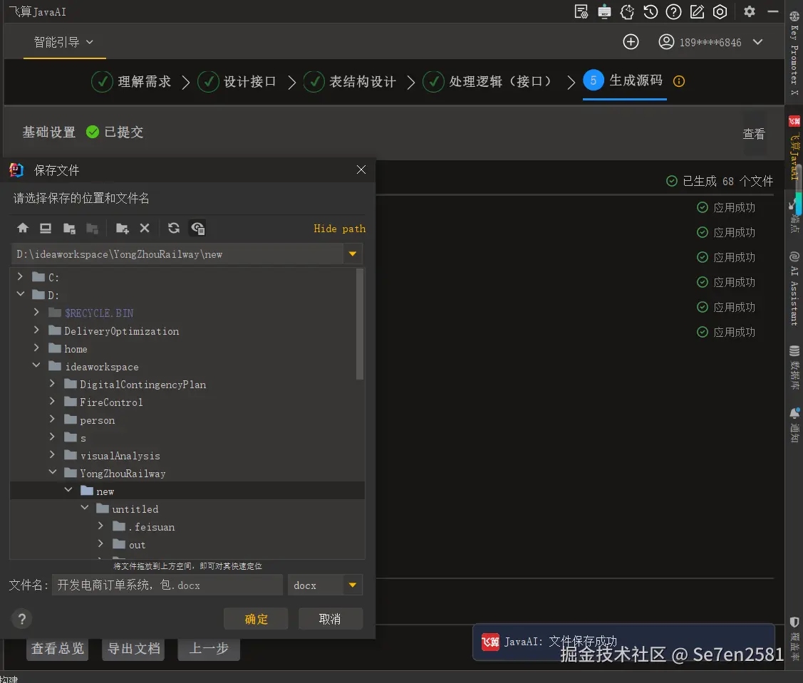 文档生成:系统自动生成项目文档,点击“导出文档”即可将文档保存至指定位置。