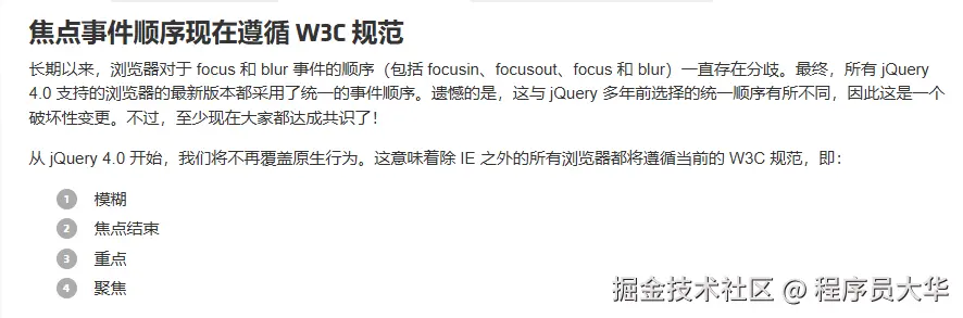 以前 jQuery 自己统一了一套事件顺序,现在它选择: