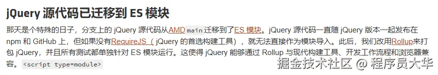 这意味着 jQuery 不再只能靠 script 标签活着了,终于可以被当成现代模块来使用。