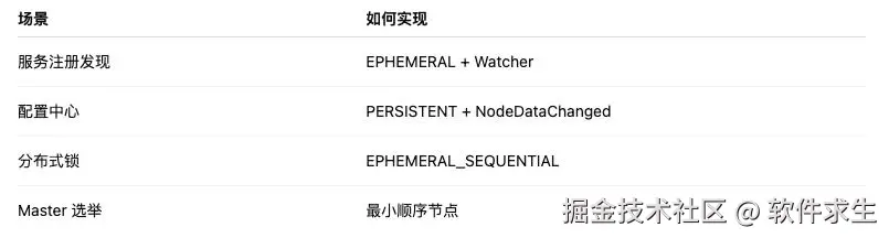 现在我们把两点合在一起看。ZooKeeper 本身只提供了: