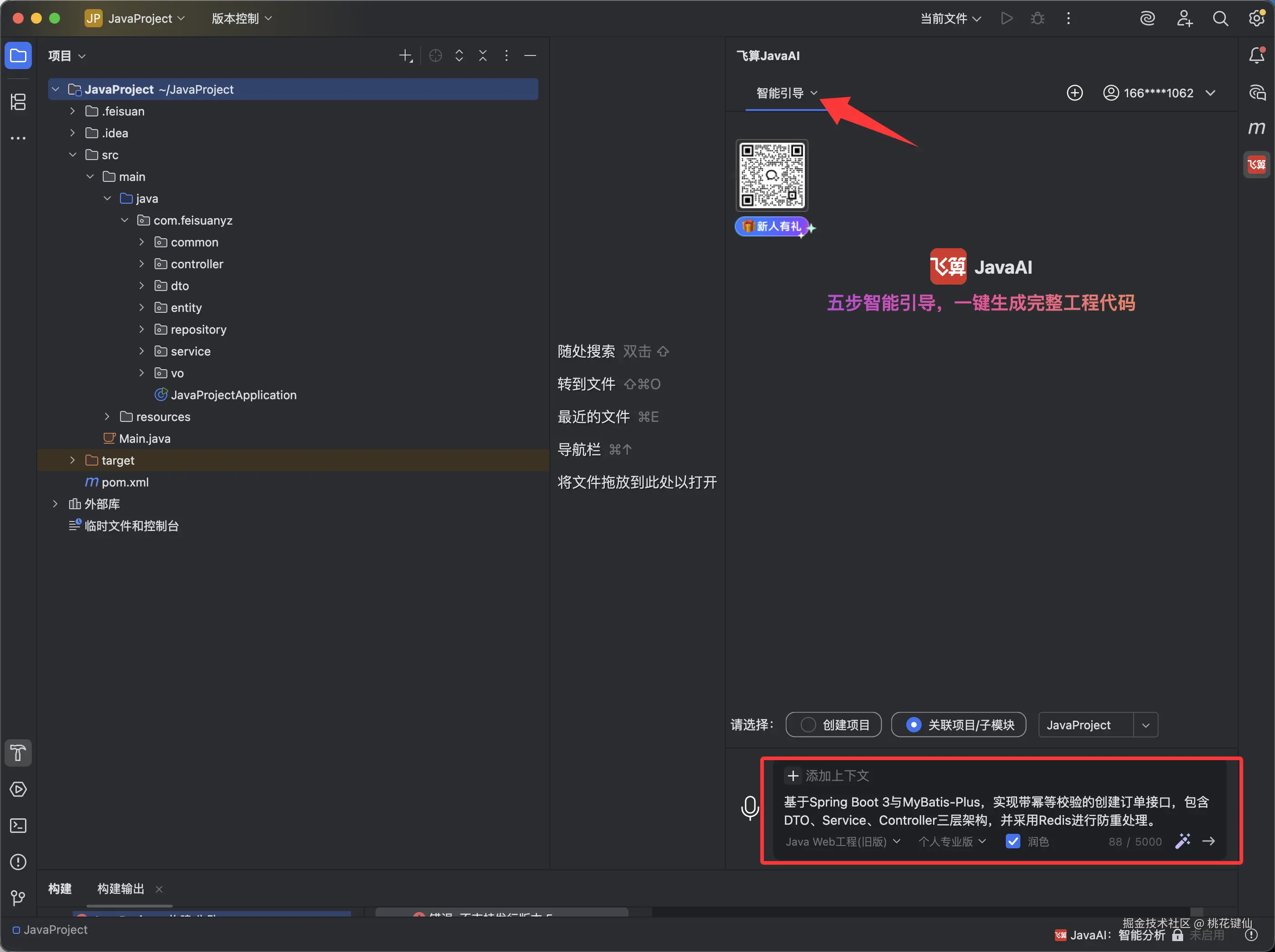 这次我使用的是飞算的“智能引导”功能,一起来看看它有多惊艳。