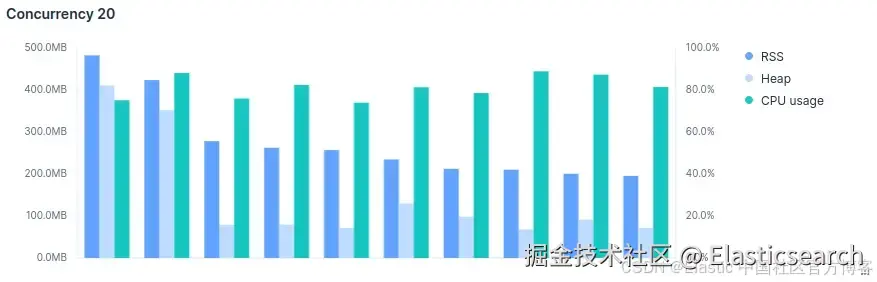 在 concurrency 40 时,实例完全崩溃。内存和 CPU 超负荷,摄取可靠性崩溃。