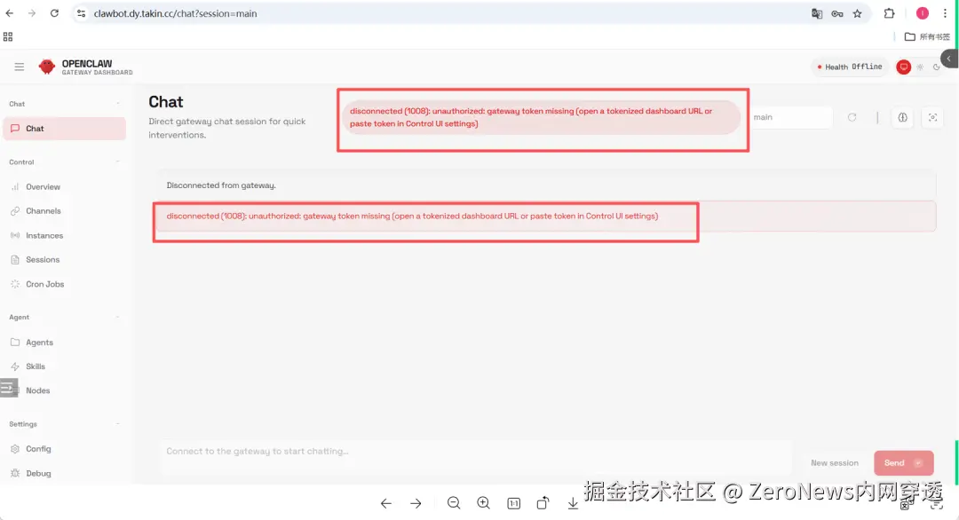 第一次通过远程连接访问 OpenClaw Gateway Dashboard时,需要配置 GateWay Token,否则会出现错误。