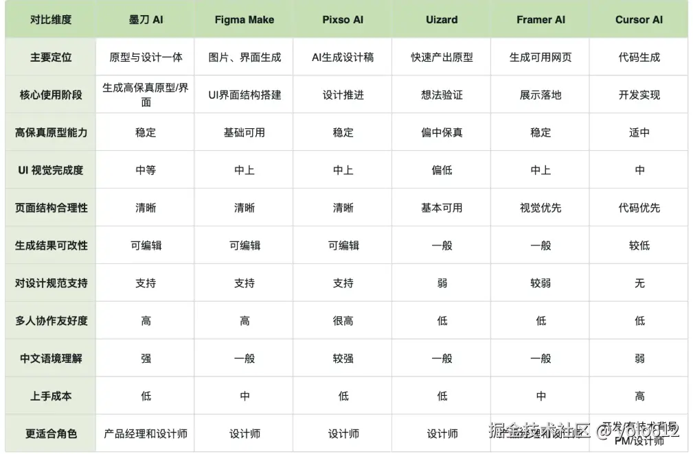如:figma make、墨刀、pixso、stitch等