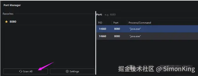 插件的功能非常简单,就只做一件事:解决端口冲突。对于喜欢命令行的开发者来说,不值一提。但是,不喜欢命令,偏向图形化界面的开发者来说非常友好。喜欢的老铁,可以安排上了。