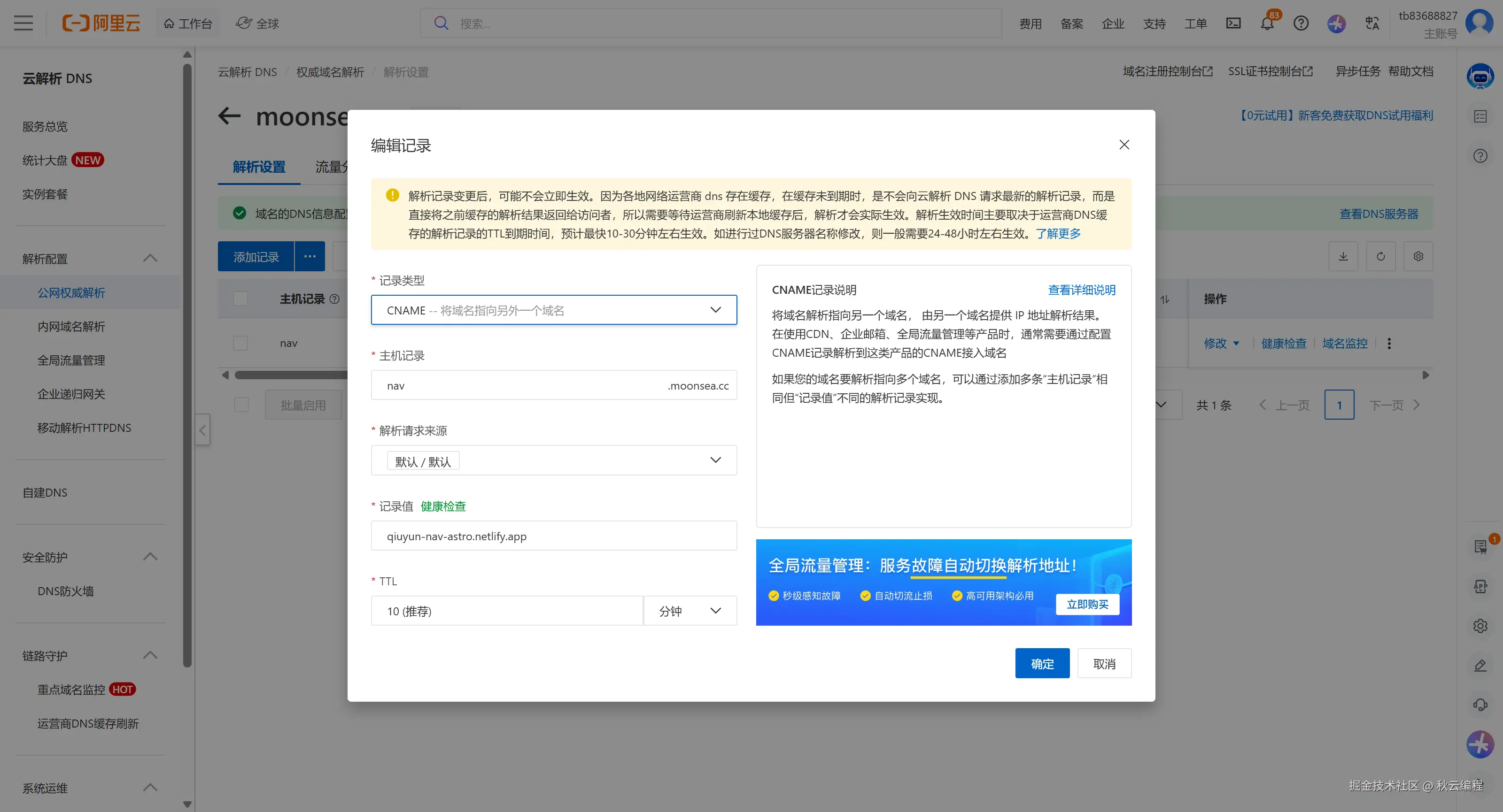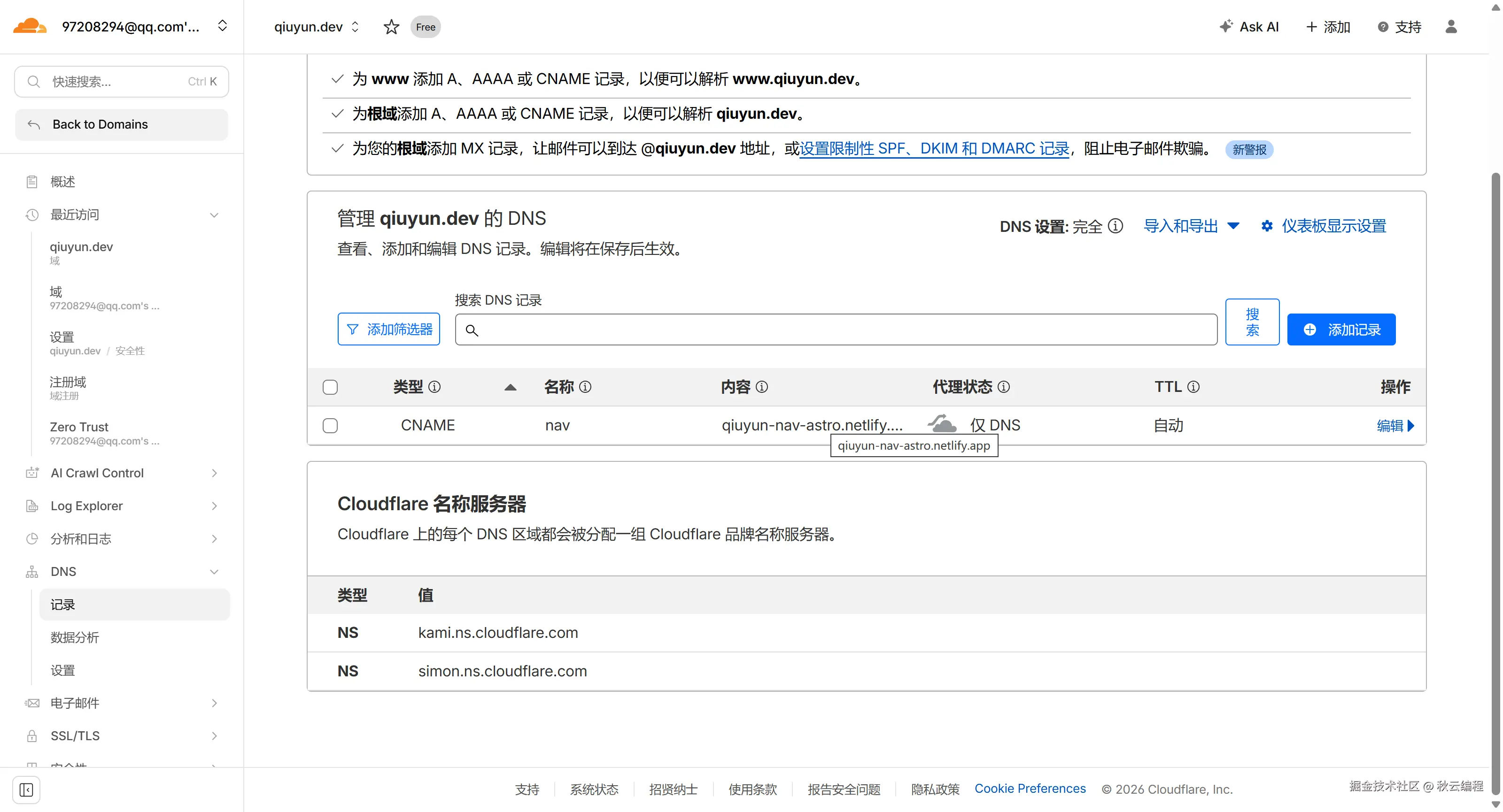 - Netlify 默认分配的域名:qiuyun-nav-astro.netlify.app