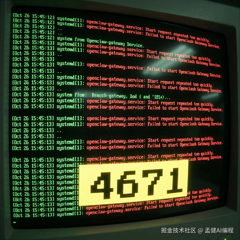 /etc/systemd/system/openclaw-gateway.service):每5秒尝试启动,发现端口被占,立即退出,systemd 又拉起来……