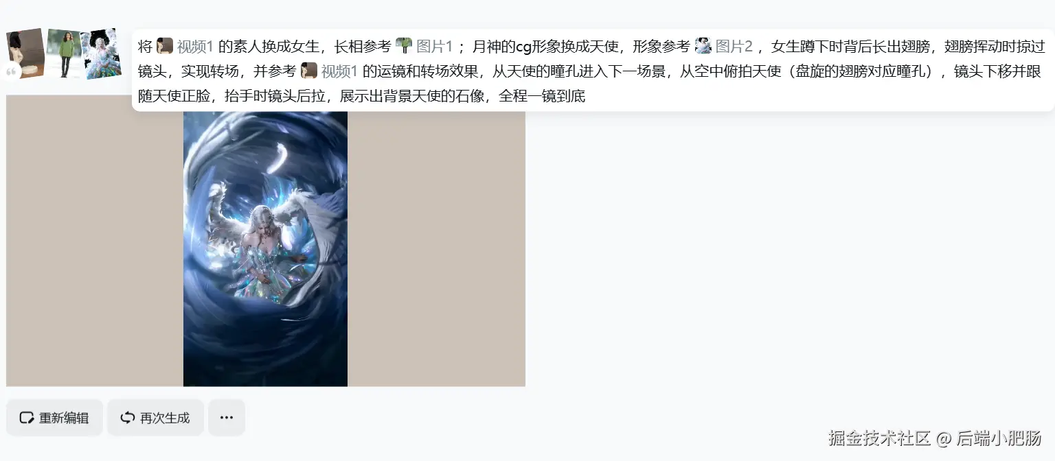 在参考内容处输入参考视频,需要替换的主体图,然后输入以下提示词,等待几分钟就会获得成品视频。
