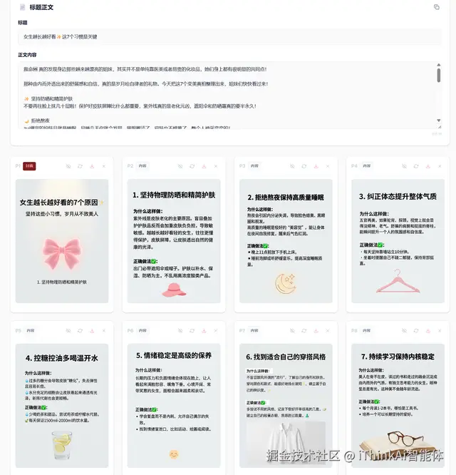 AI 会开始干活,几分钟时间,一套风格高度统一的图片就出来了,这才是做 图文矩阵 该有的样子。