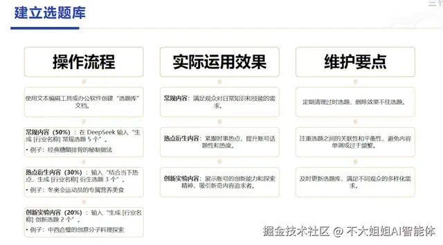 DeepSeek目前在内容逻辑上的表现非常稳。 它不仅仅是帮你写一段话,而是能基于你提供的赛道,进行结构化的选题拆解。