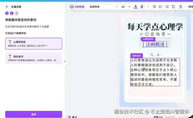 接下来,利用 Canva 或稿定的“批量创建”功能,可以实现图文笔记的工厂式生产。