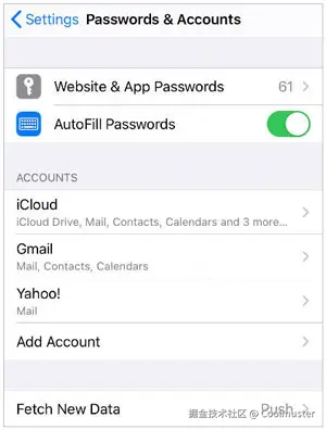 步骤 1. 在 iPhone 上,转到“设置”> 点击您的 Apple ID > 导航到“密码和帐户”> 选择“Gmail/Outlook/Yahoo”。