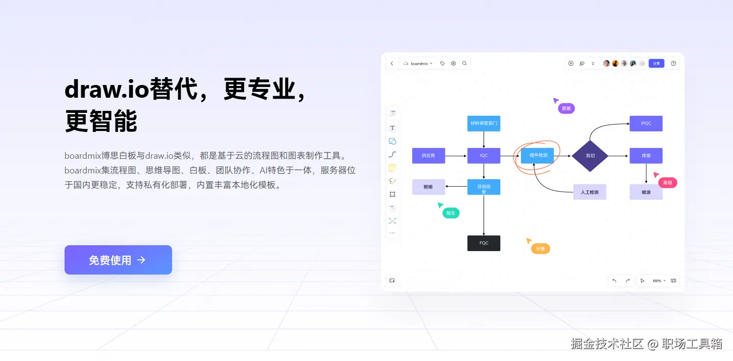 目标用户:喜欢在线协作、觉得 drawio 界面太丑的团队。