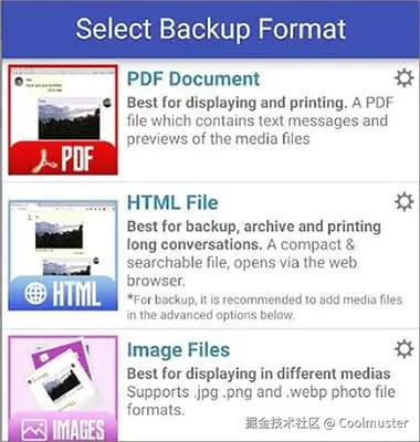 - 在转换为 PDF 之前,可以将Android手机上的短信导出为各种可读格式到电脑,例如 HTML、TEXT、CSV、BAK、XML 等。