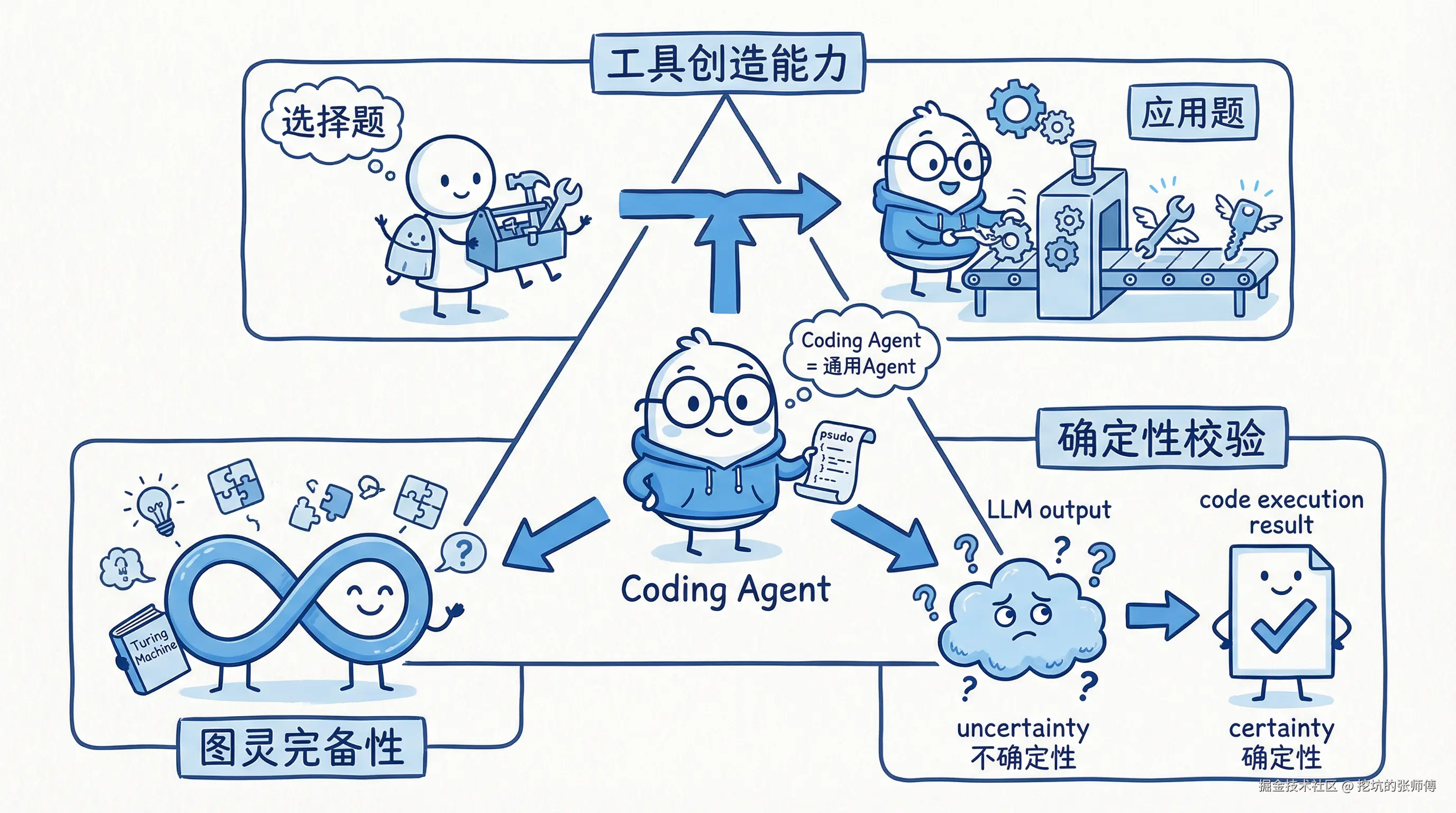理解架构变革,首先要更新认知:Coding Agent 不仅是编程辅助工具,更是通用 Agent 的最佳形态。人类从使用天然工具到制造工具是进化的分水岭,AI 亦然。