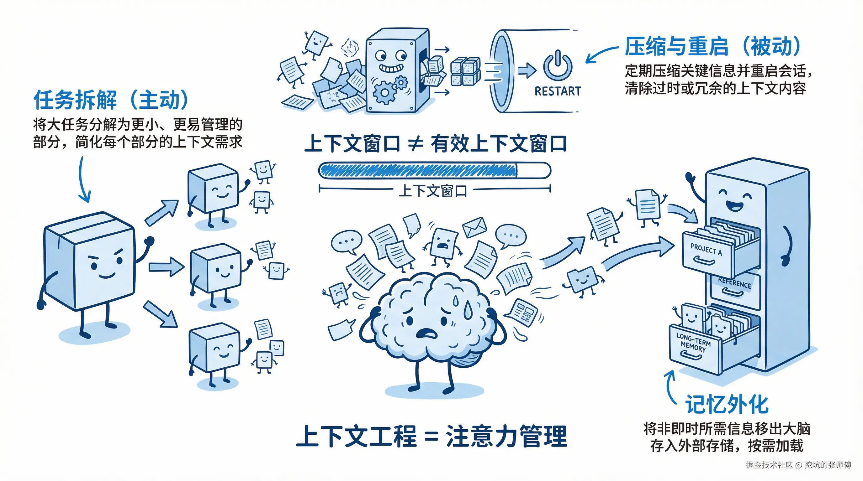 解决之道在于上下文工程,即从“信息投喂”转向“注意力管理”: