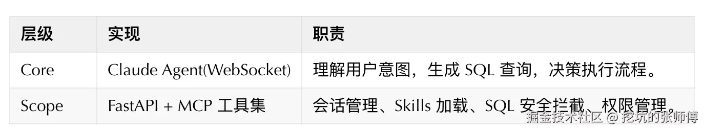 DataAgent 是基于 Core-Scope 架构构建的数据分析领域专家,用于解决“让不懂 SQL 的用户能用自然语言查询复杂数据库”的问题。