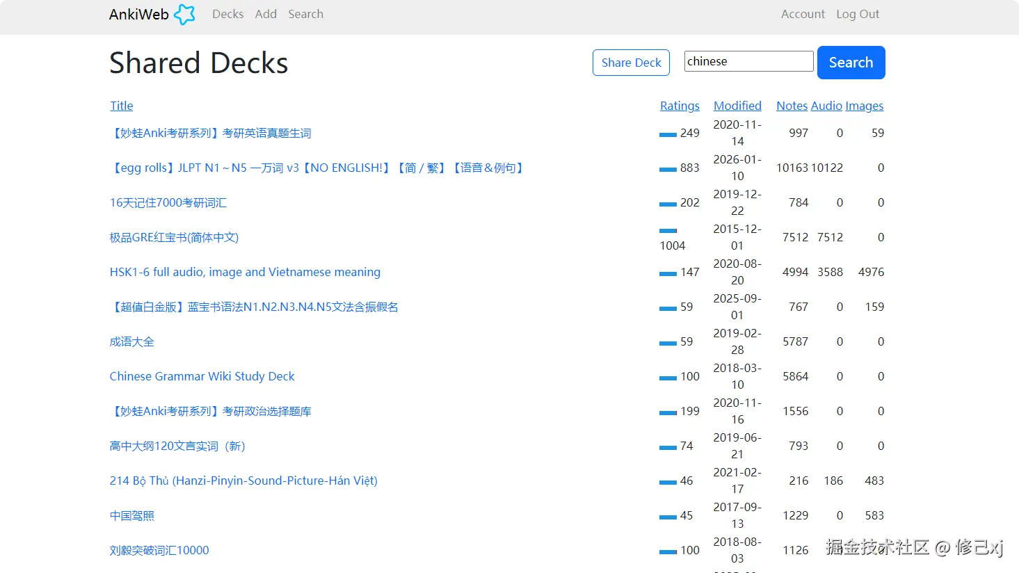 我们可以从这些共享牌组中找到我们想要学习的牌组