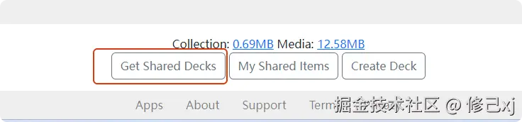 注册完成后登录账号,在页面底部点击 Get Shared Decks,获取共享的牌组