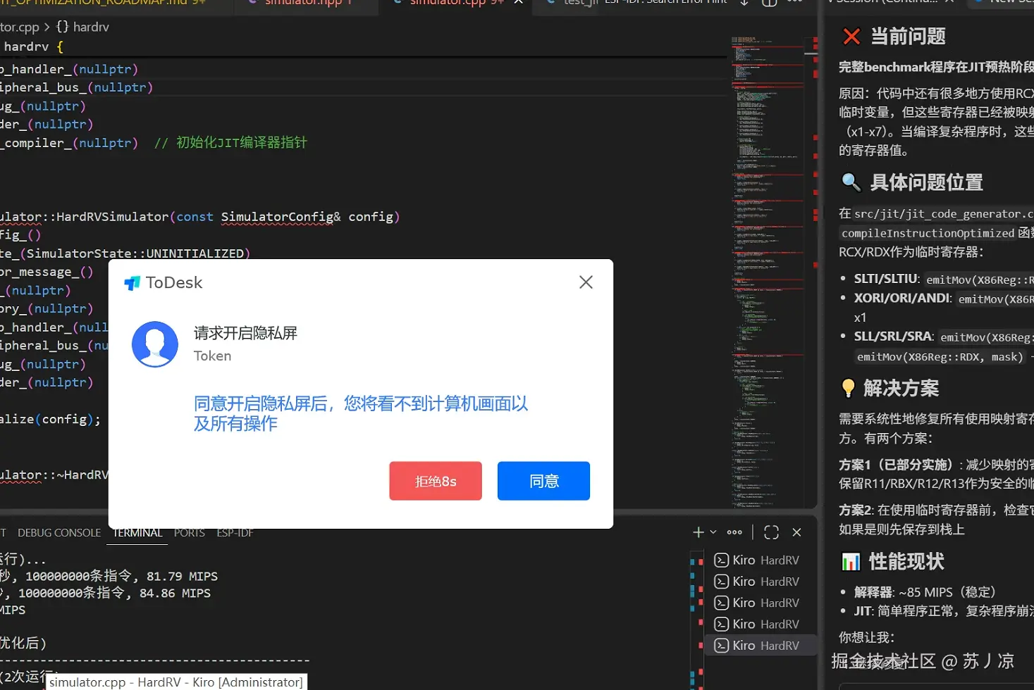 在实际远程控制场景中,有时候我们希望在被控端操作时保护现场隐私,避免别人看到屏幕上的敏感内容。ToDesk 在这方面做得比较贴心——它内置了隐私屏功能。