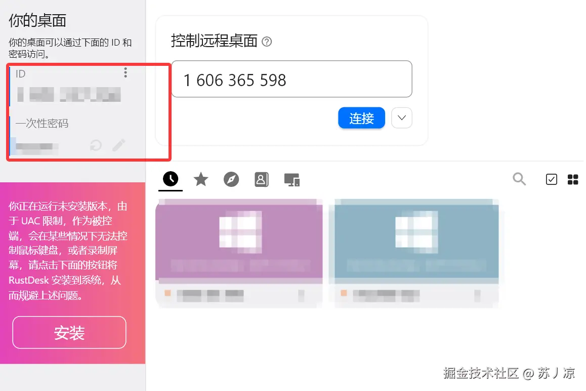 RustDesk只要获取了设备控制码和密码就可以进行连接。