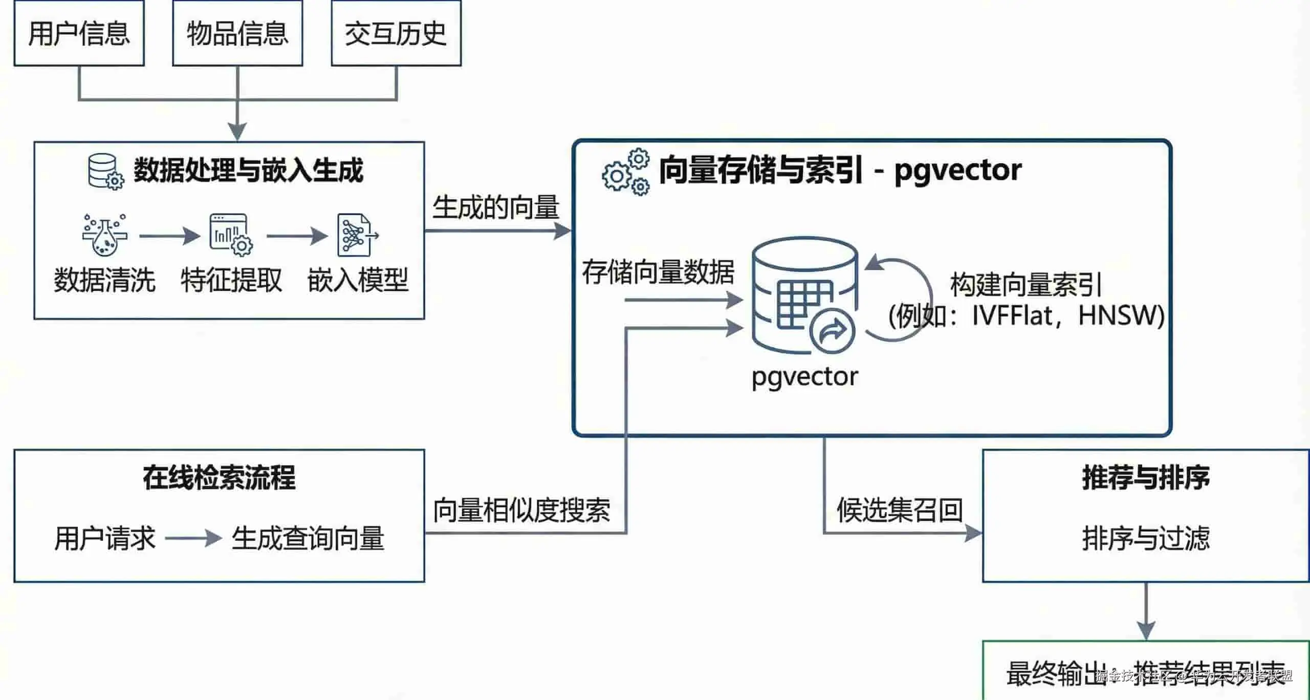 CREATE TABLE products ( id bigserial PRIMARY KEY, title text, description text, price numeric, embedding vector(768) --768维向量,由商品描述(description)生成); -