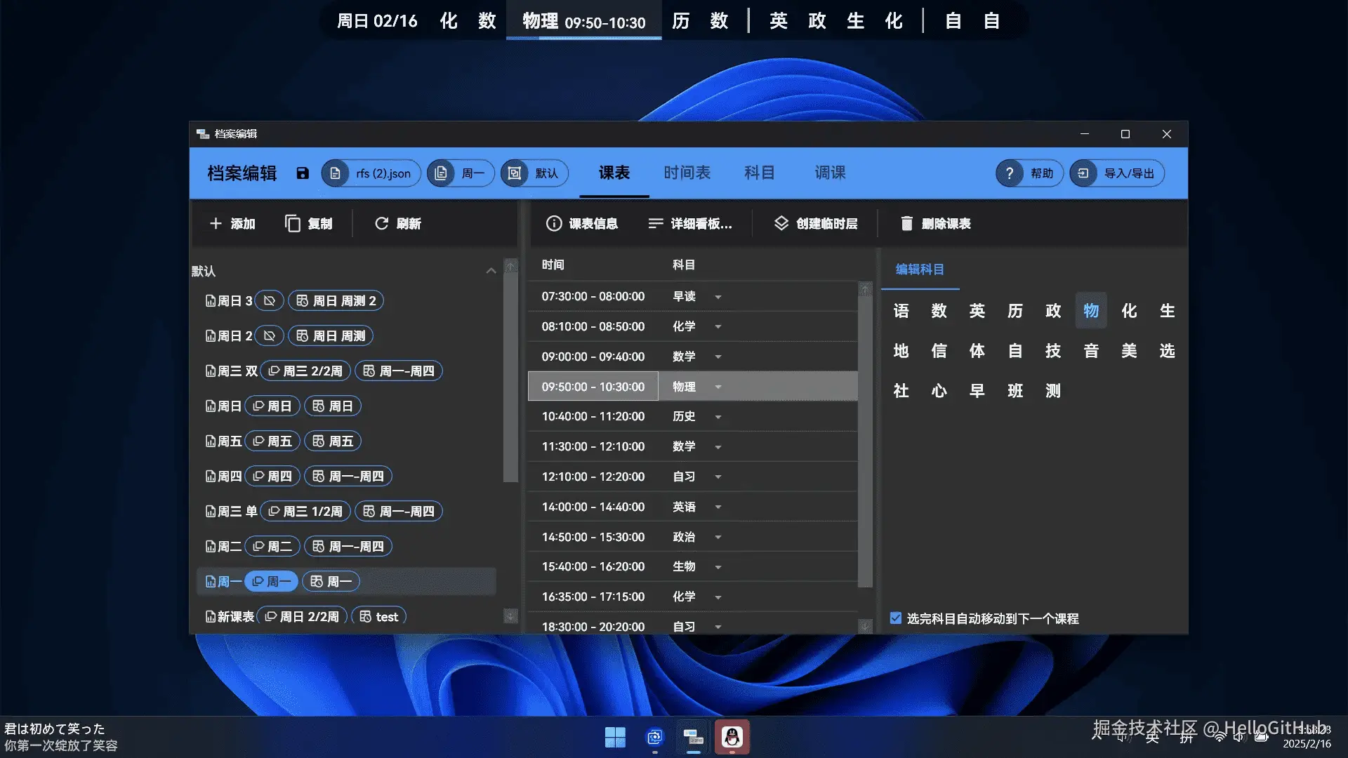 4、ClassIsland:抬头即见的开源课表工具。这是一款专为大屏设备打造的桌面课表应用,可将课程表以简洁组件的形式常驻桌面,取代传统黑板课表。支持下课提醒、天气信息、倒计时、密码保护和课表导入等功能,适用于配备教室多媒体大屏、投影仪或智慧黑板的教室。