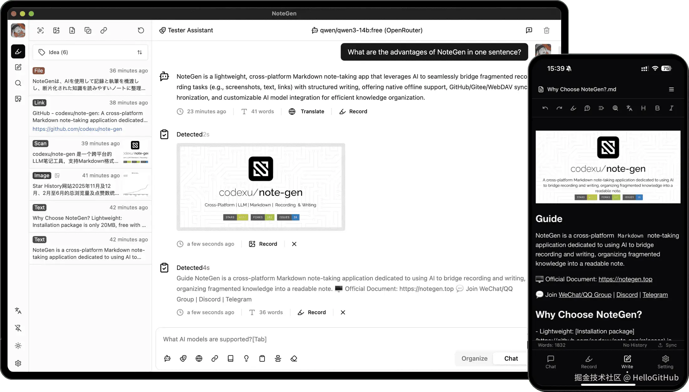 29、note-gen:基于 AI 的 Markdown 笔记应用。这是一款跨平台的 Markdown 笔记应用,专注于用 AI 搭建“记录-写作”的桥梁。它不仅支持截图、文本、插图等多种记录方式,还能通过 AI 模型将这些碎片化内容整理成可读的笔记。