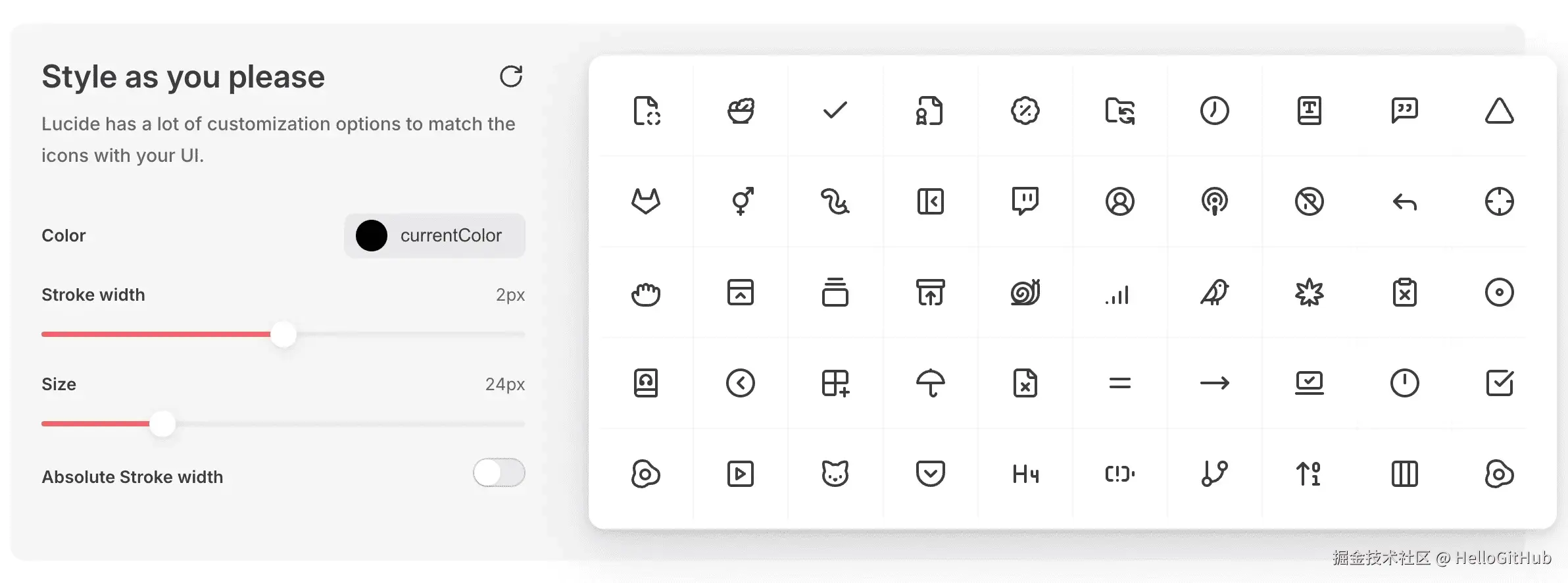 40、lucide:精美的开源图标库。该项目是由社区驱动的开源图标库,提供 1000+ 高质量的 SVG 图标,支持 React、Vue、Svelte、React Native 等主流前端框架,以及 Figma 插件,方便开发者和设计师使用。