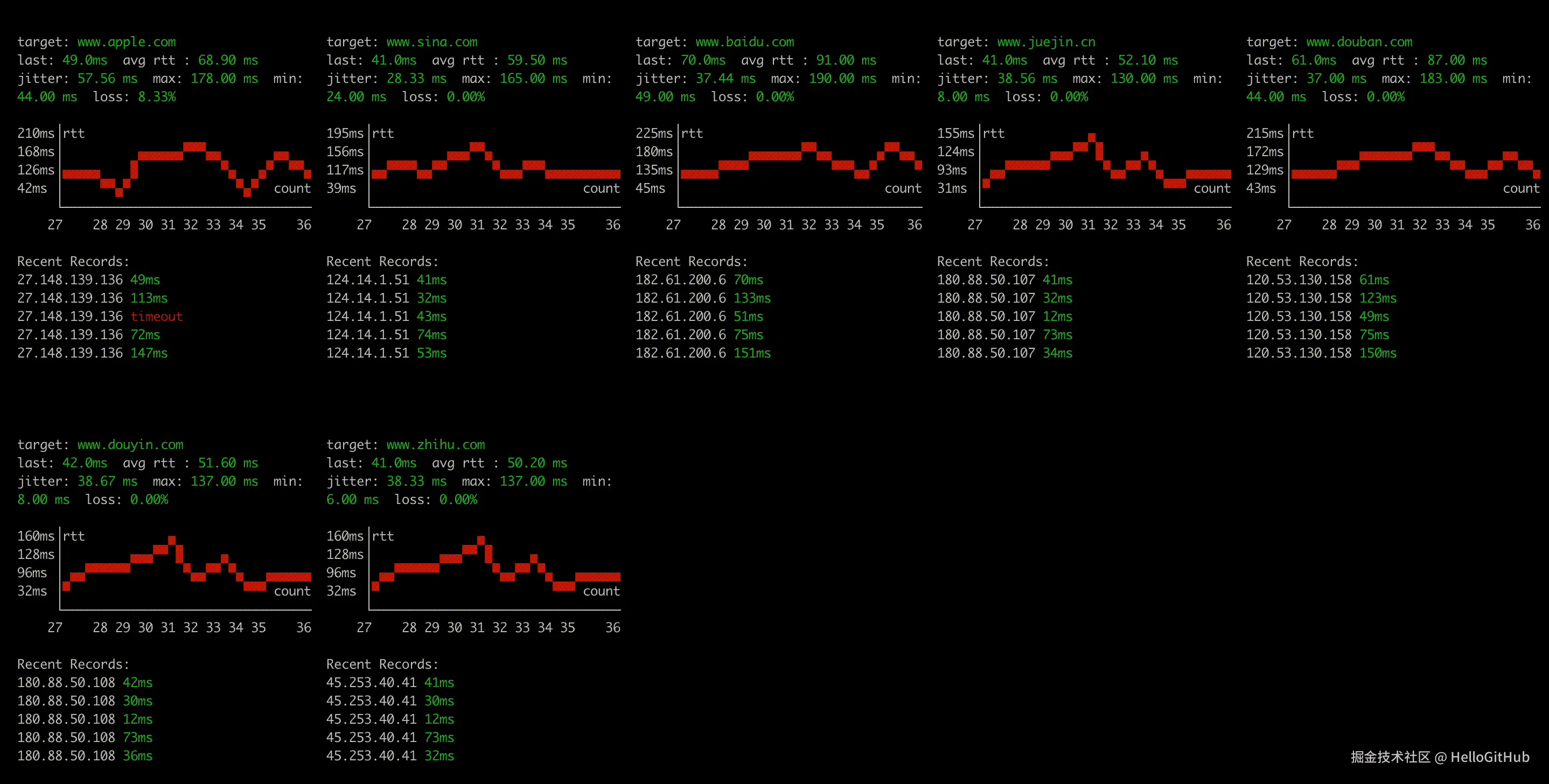 28、Nping:Rust 的多地址并发 Ping 工具。这是一个用 Rust 开发的可视化 Ping 工具,支持同时对多个目标地址并发 Ping 操作。它提供了分区折线图和表格视图等可视化展示,支持实时动态展示延迟、丢包率等性能指标,同时兼容 IPv4 和 IPv6 网络环境。