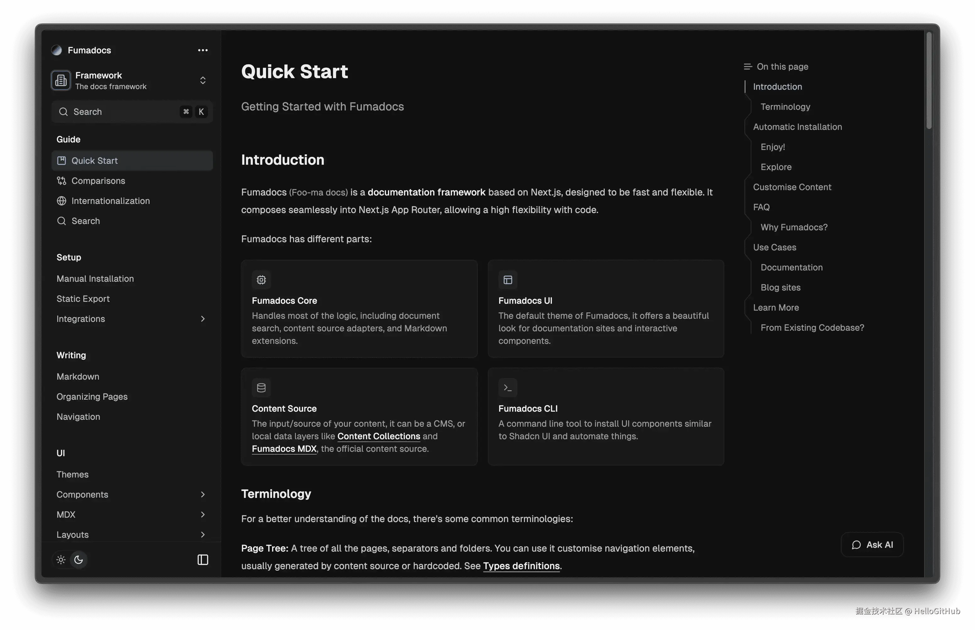 17、fumadocs:用 Next.js 打造现代化的文档网站。该项目是基于 Next.js 构建的文档网站框架,专为快速创建现代化、高颜值、功能丰富的文档网站而设计。它完全采用 ESM 格式,紧跟前端技术潮流,支持内容集合、MDX、Contentlayer、TailwindCSS 等技术,适用于项目文档、API 文档、开发指南等多种文档需求。